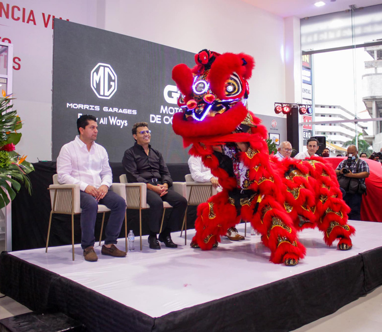 ¡Una gran sorpresa!. Como consecuencia de la sorpresa que realizó el empresario Amado Guzmán a Zhang Wei, presidente de MG Motor México un día antes, fue tanta la emoción e impacto del performance que el presidente (Zhang Wei) pidio que nos quedarámos un día más en Mazatlán para que el león chino se hiciera presente en la inauguración que tenian programada para la nueva sucursal de MG en Mazatlán, dónde asistieron diferentes personalidades y empresarios como los 2 inversionistas Amado Guzmán, Sergio Coppel, así como también Daniel Nava, Vicepresidente de MG Motors México, Zhang Wei, presidente de MG Motors México,, Quimico Luis Guillermo Benitez Torres, presidente municipal de Mazatlán; y Cristobal Castañeda, en representación del gobernador del estado Rubén Rocha Moya, el cuál quedaron sorprendidos por la actuación del grupo y con una gran sonrisa por la energía que plasmaba el león.